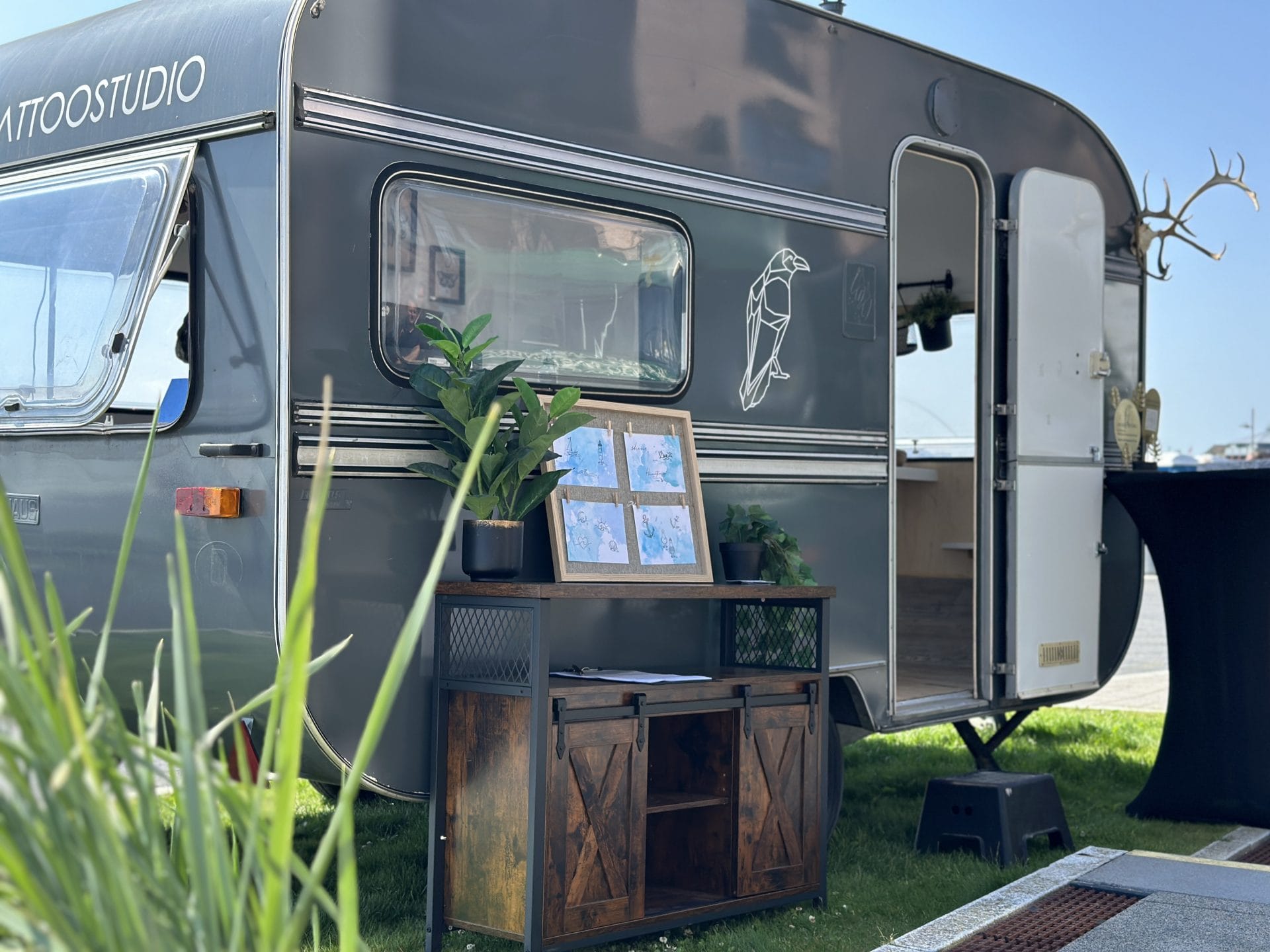 Mein liebevoll umgebauter Wohnwagen ist nicht nur gemütlich, sondern auch voll ausgestattet für dein nächstes Tattoo-Abenteuer.